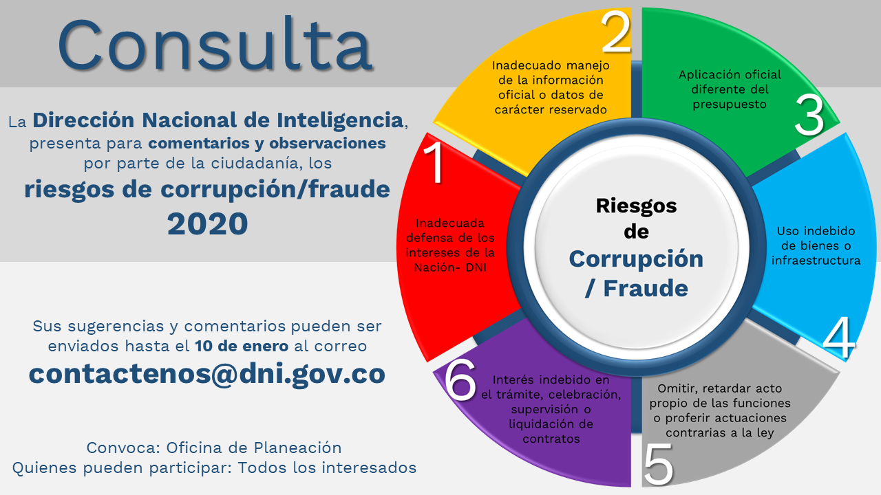 Para la Dirección Nacional de Inteligencia, es de gran relevancia conocer las opiniones de sus grupos de valor y partes interesadas sobre la información dispuesta para consulta, ya que le permite complementar y priorizar aspectos relacionados con su gestión, mejorando el cumplimiento de sus funciones en contribución al cumplimiento de los fines esenciales del Estado.