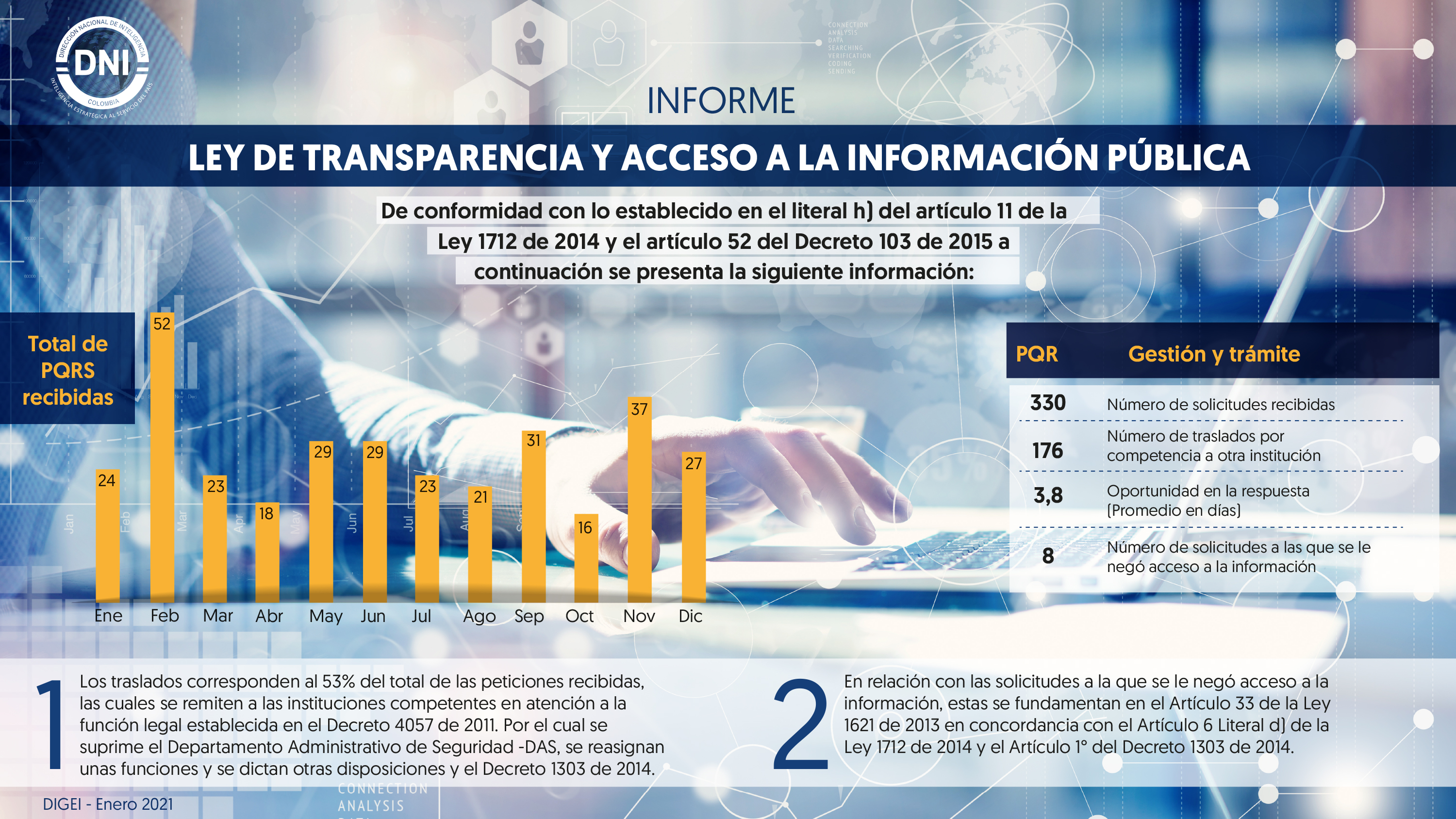 En cumplimiento a la Ley 1712 del 6 de marzo de 2014 el Departamento Administrativo Dirección Nacional de Inteligencia pone a disposición de la ciudadanía la siguiente información:
